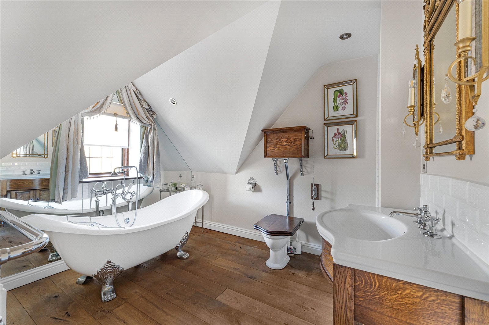En-suite Bathroom: Window to rear aspect, rolled top bath with shower attachment, low level WC, hand wash basin with cupboard underneath, walk-in shower.