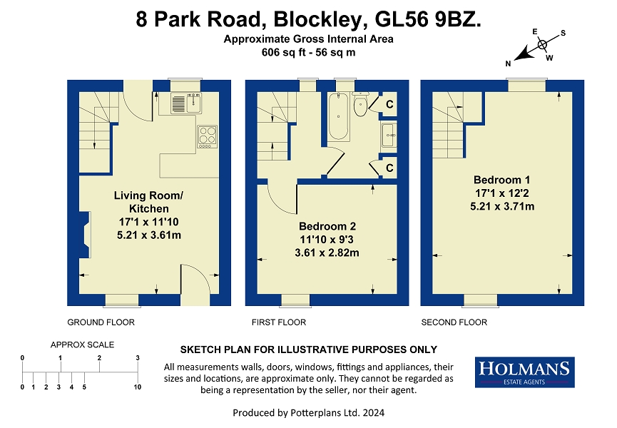 With patio closest to the property and steps down to an enclosed lawned garden with tall hedgerow surround and rear timber cabin. There is a right of access for all adjacent properties and a communal pathway outside the property giving access via an alleyway to Park Road.
