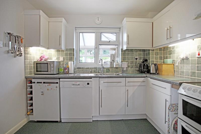 Fitted on two sides with granite style laminate worktops with inset 1 1/5 stainless steel sink unit with single drainer and mixer tap. Space and plumbing for dishwasher, space for slot in electric cooker with cooker hood above. Three base units and four matching wall mounted cupboards. Integrated 6 bottle wine rack and window opening directly on to the rear conservatory.
