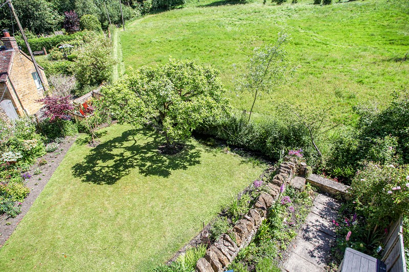 One having a flagstone base with side garden areas and wall adjacent to the brook and side garden area triangular in shape approximately 50ft wide by 30ft deep. Mature fruit trees and predominantly laid to lawn with well stocked shrubbery and flower borders and retaining random Cotswold stone wall adjacent to Donkey Lane. There is a particularly attractive decking area for al fresco dining positioned to take full advantage of the sun most of the day.