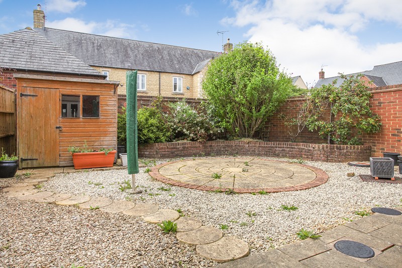 Sunny south westerly facing aspect taking full advantage of the afternoon and evening sun. Circular patio area with gravel surround. Brick and timber boundary walls. Raised flower beds. Second patio immediately adjacent to the property. Outside water tap. Timber cabin. Courtesy gate to rear courtyard area.