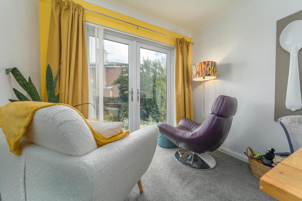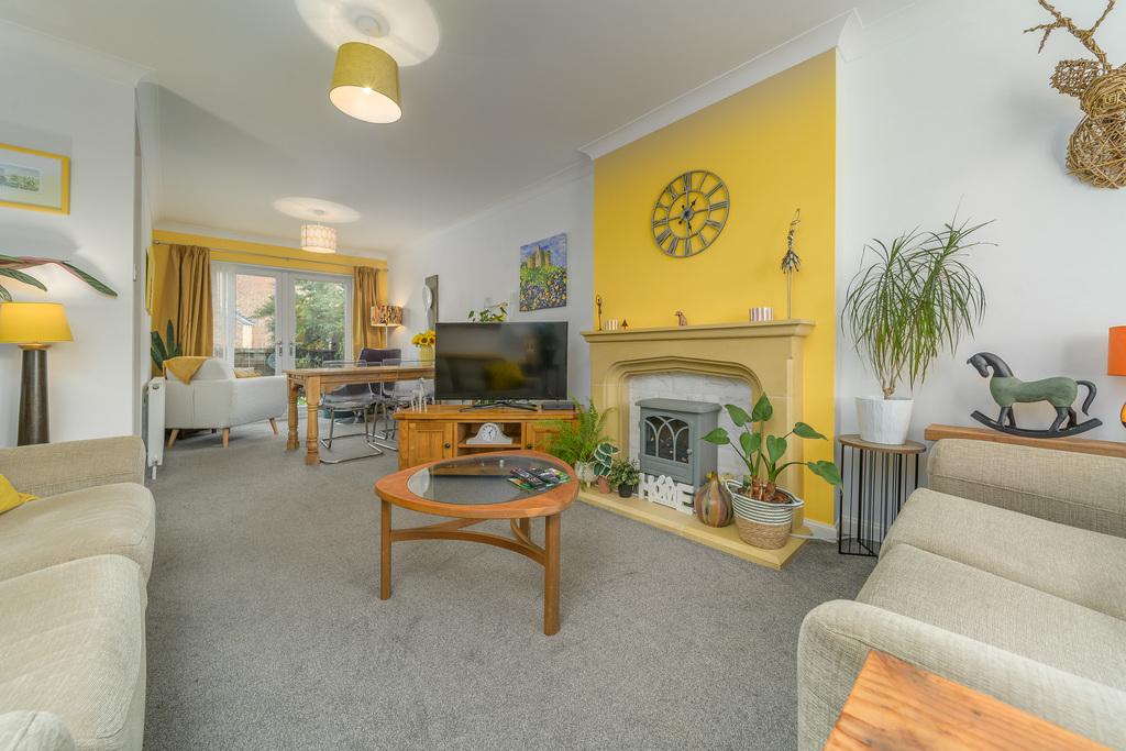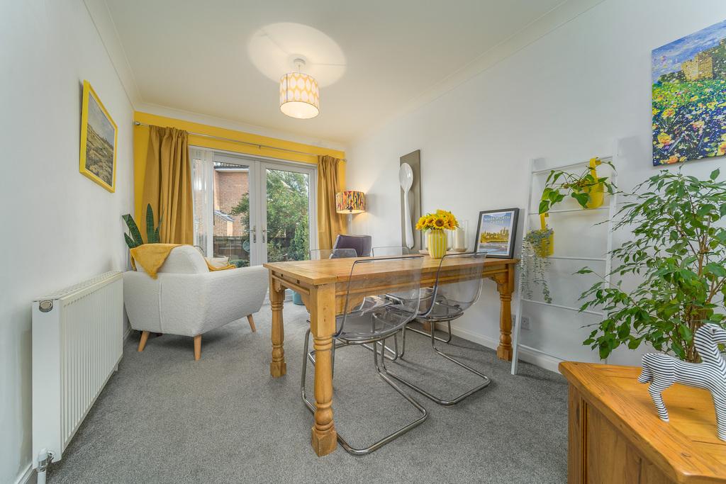 A second door opens to the dual aspect lounge-diner which is bathed in natural light courtesy of a large window to the front and a pair of French doors opening to the rear garden. The interior design has been carefully considered being wonderfully light and the central fireplace, with a tiled back and stone surround and hearth incorporating an electric wood burner. The dining area is an inviting space to sit and dine whilst appreciating the pleasant views of the rear garden: the French doors create a seamless transition between indoor and outdoor living.