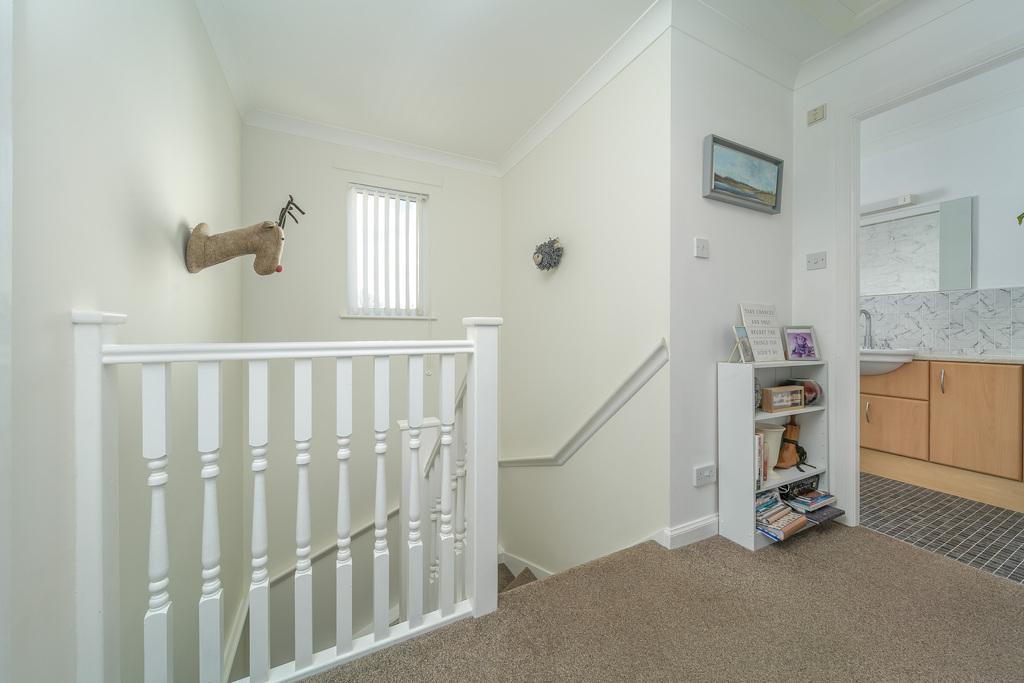 Taking the stairs to the first floor, the landing opens out to three bedrooms, two bathrooms and a storage cupboard.