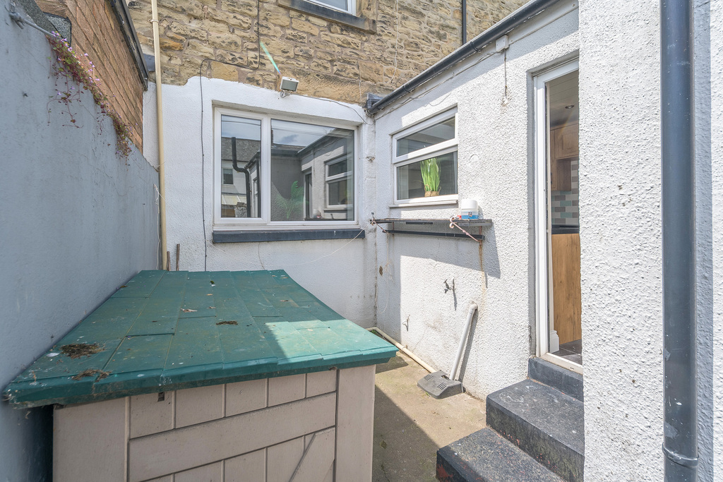 Externally, the rear yard is secluded and offers space to house the wheeled waste containers in addition to a garden shed. There is a wooden gate providing useful access to the lane which extends along the rear of the property.