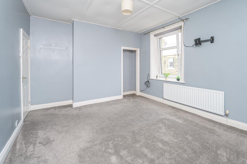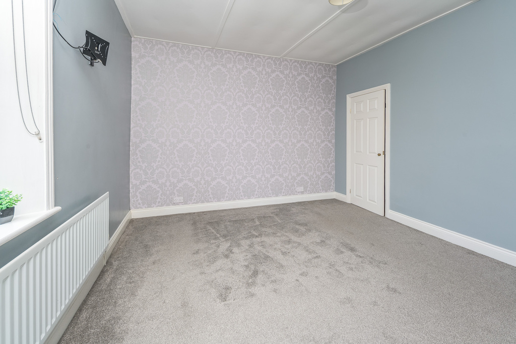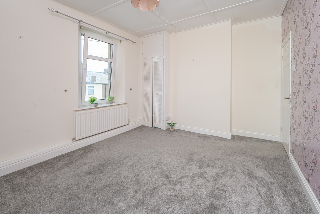 The primary bedroom is a large super king-sized room with a vertically pivoting window overlooking the front of the property. The room offers a recessed storage area, a fitted cupboard and a wall mounted television bracket. The room is finished with a lovely grey carpet which works in harmony with the grey painted walls and beautiful feature wall.