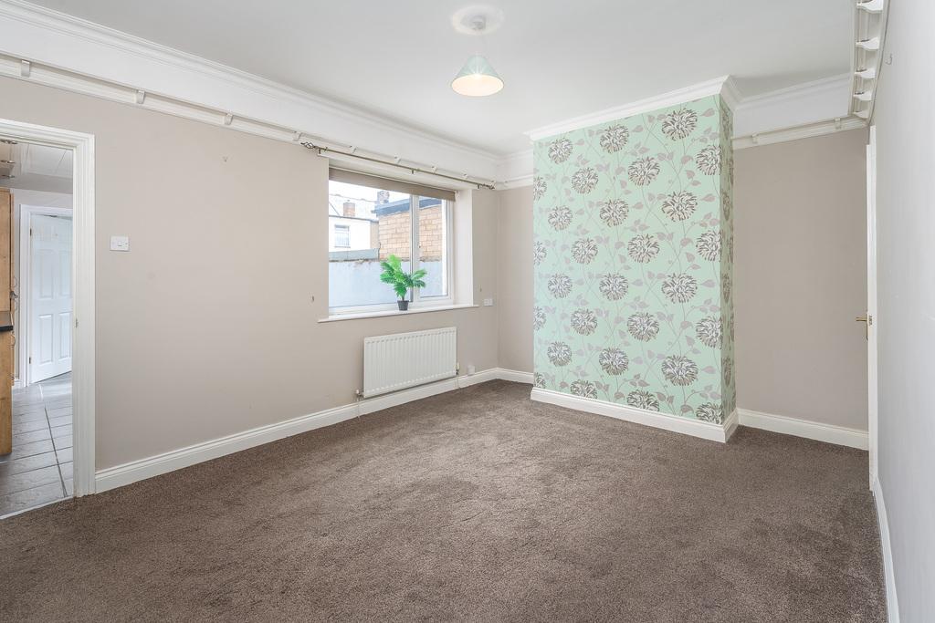 The dining room is a characterful space with a chimney breast between two alcoves, a picture rail and coving and a storage cupboard in the space beneath the stairs. The grey carpet extends from the lounge creating a seamless transition between the two rooms. Natural light circulates via a large window overlooking the rear courtyard.