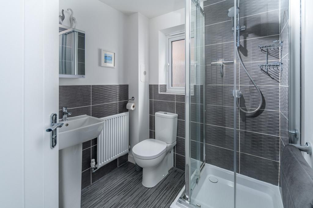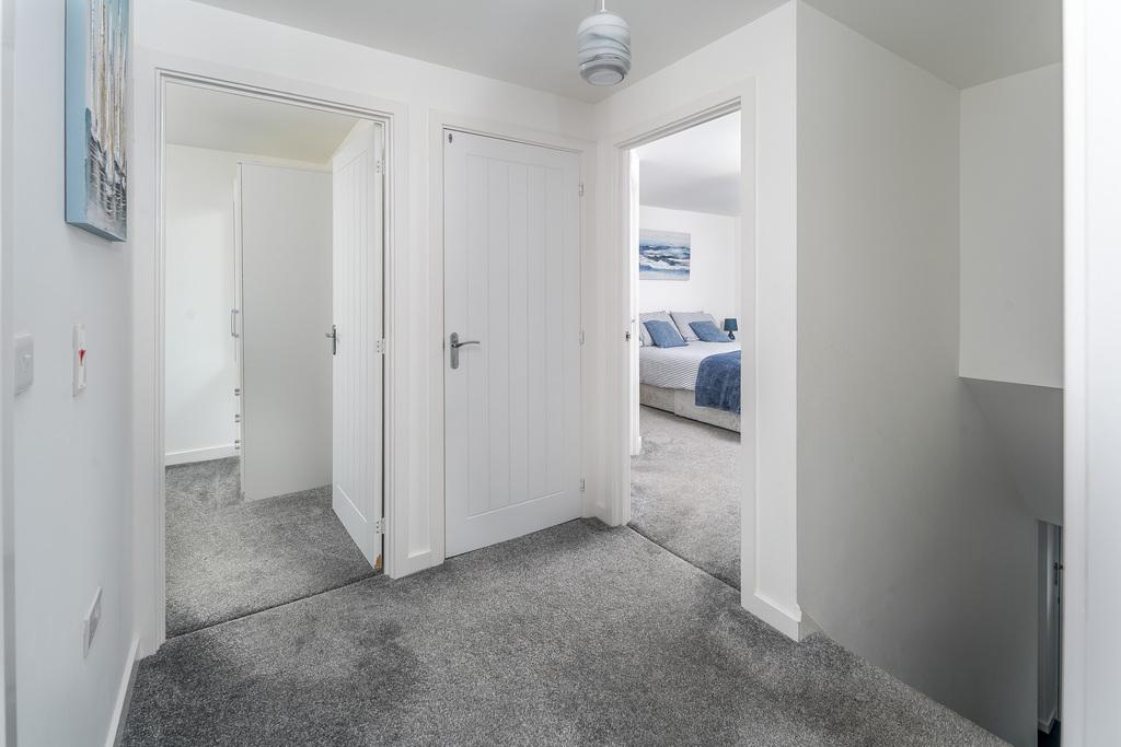 Taking the stairs to the first floor, the spacious landing opens out to four bedrooms, a storage cupboard and the family bathroom. All the bedrooms are tastefully decorated allowing the easy addition of accent colour and are furnished with a sumptuous grey carpet creating comfort as you move throughout. The bathroom is finished with grey vinyl flooring.
