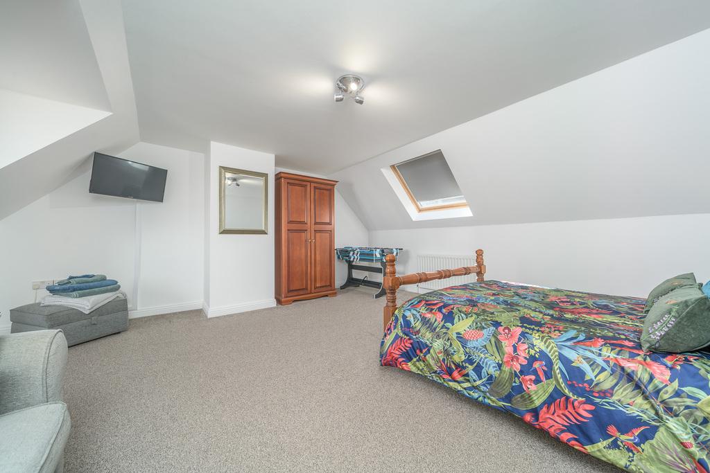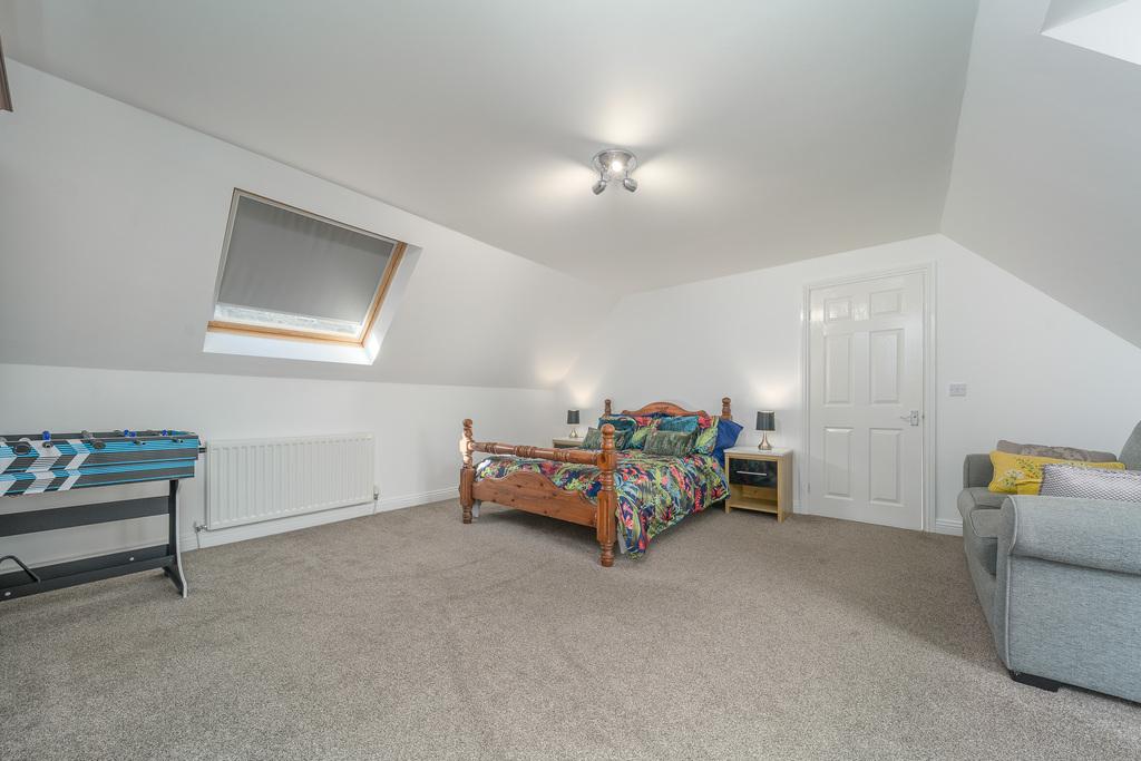 The principal bedroom is an impressively sized double room with a Velux window and dormer overlooking the front. The space is finished with a sumptuous carpet adding comfort as you move throughout. There is plenty of space for a range of bedroom furniture including a sofa if you so wished.