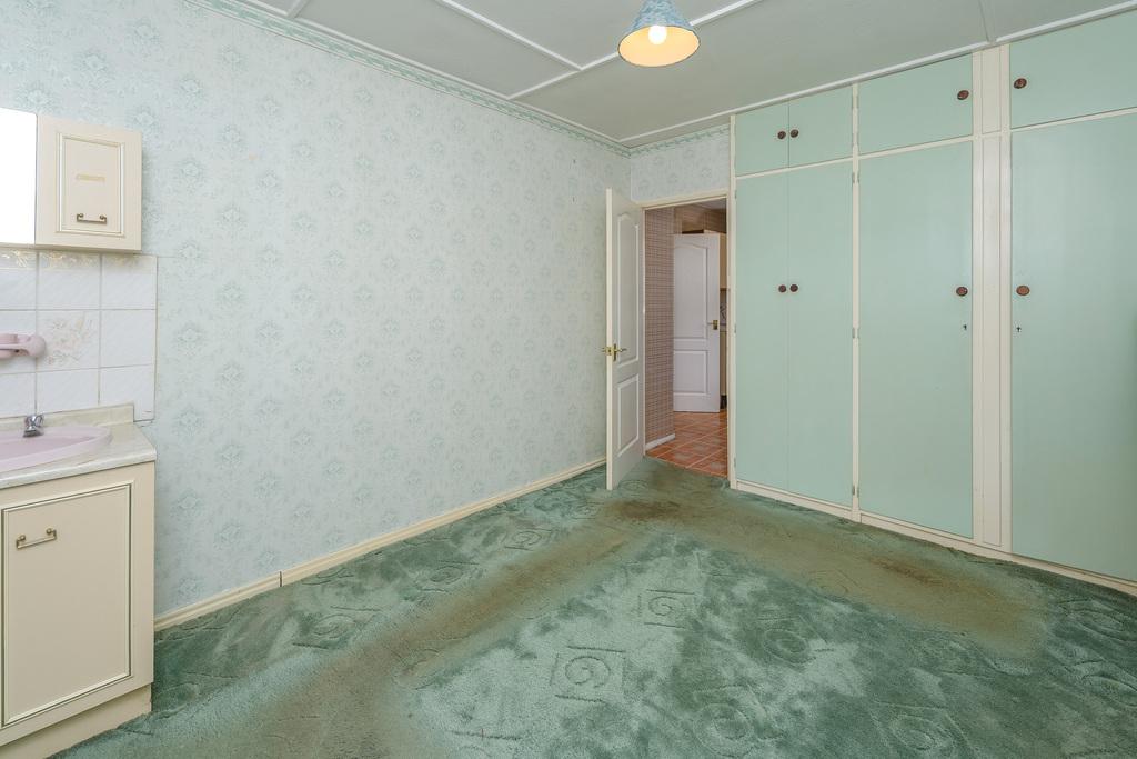 The bedroom is a large double room with a window to the side of the property. This room offers a vanity sink and plenty of storage options.