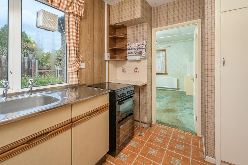 The kitchen offers a good number of wall and base units and plenty of workable bench space incorporating a single bowl stainless steel sink with a drainer. There is space for a free-standing cooker, fridge-freezer and space and plumbing for a washing machine. A window to the rear allows for natural light in addition to an uninterrupted view of the garden.