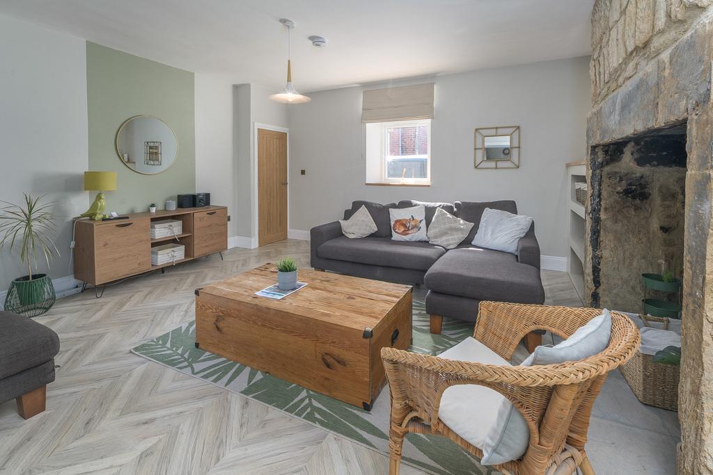 The lounge is a beautifully inviting room with an impressive open sandstone inglenook fireplace which provides an attractive focal point and is the ideal space in which to house a wood burner or to display flower arrangements or ornaments. Illuminated by a large window to the front, the lounge is finished with quality wood-effect laminate flooring creating a sleek and stylish look. The addition of a low-level Victorian-style radiator ensures added comfort and there is useful storage in the recessed area beneath the stairs. The lounge opens into the kitchen-dining room located to the rear of the property.
