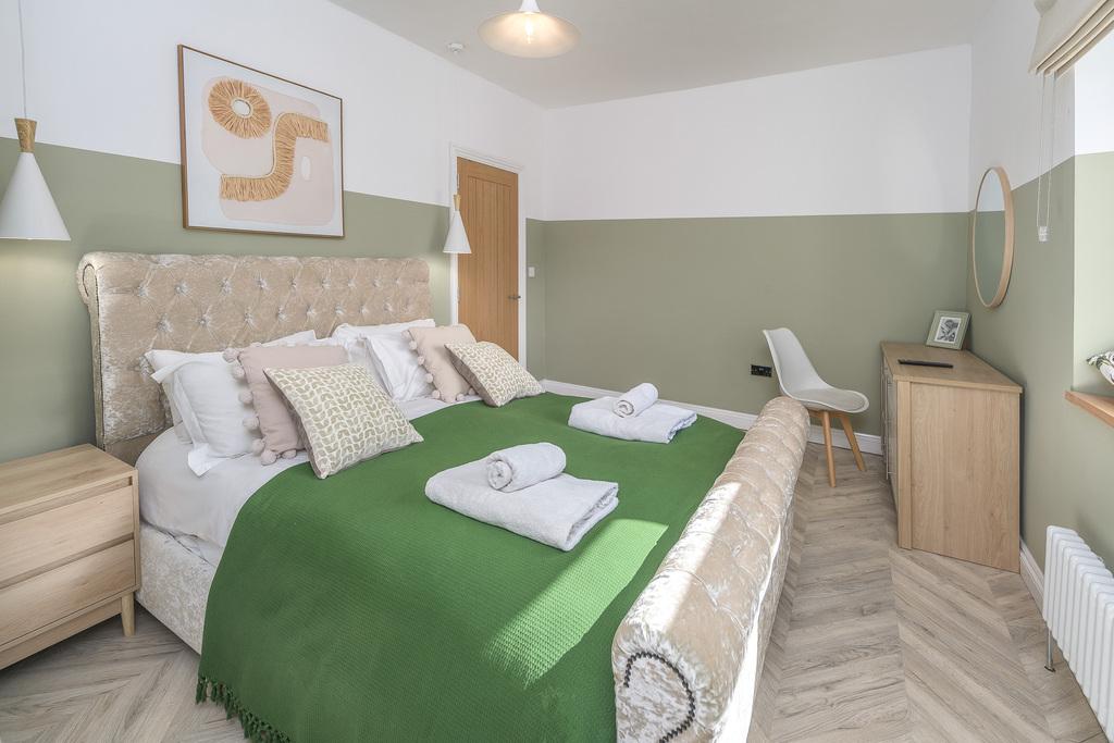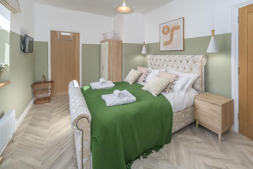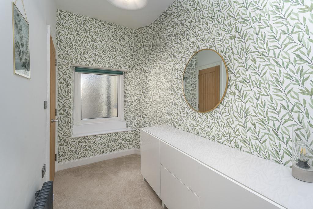 The primary bedroom is a large double room with a window overlooking the front of the property. This restful room is finished with laminate flooring and a Victorian-style radiator and there is useful built-in storage.