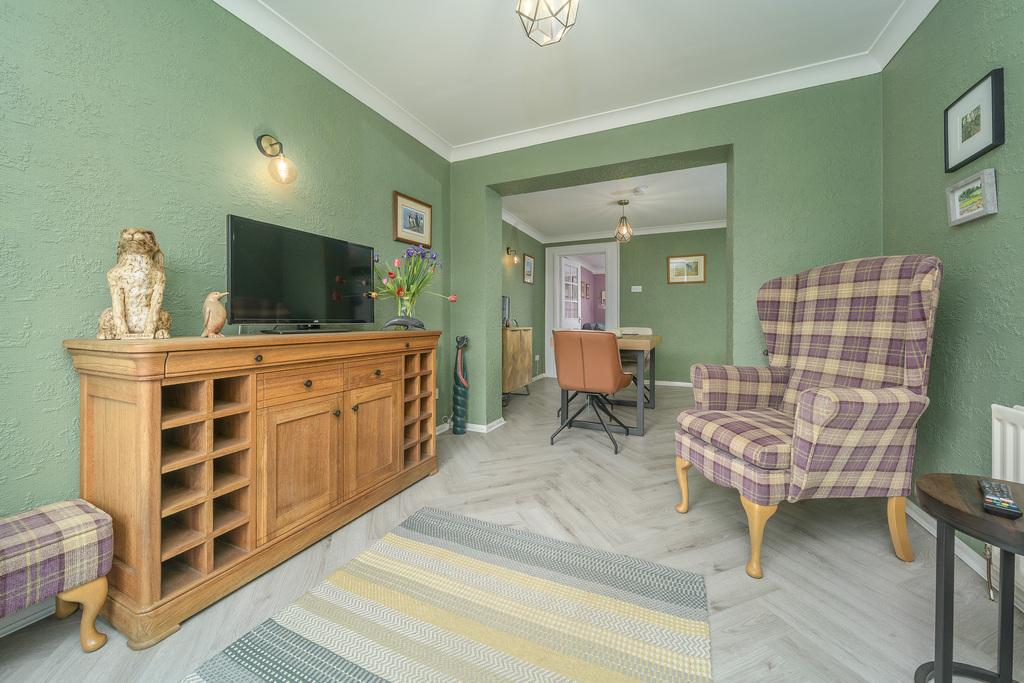 The lounge is beautifully light and bright courtesy of the large window overlooking the front of the property. A modern electric feature fireplace with wooden surround and marble-look back and hearth forms an attractive focal point. The tasteful decoration adds to the lovely atmosphere offered by this welcoming room.