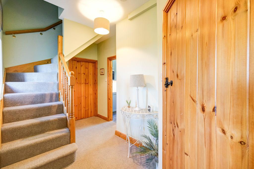 The composite front door opens into a shapely internal hallway with stairs ascending to the first floor illuminated by a window allowing for natural light. Loft access is available. The cupboard beneath the stairs incorporates the oil boiler for ease of access in addition to offering beneficial storage. You are immediately impressed by the internal décor offered by this beautiful home. Cottage style doors throughout with black latches add charm and appeal and the high ceilings add to the sense of space.
