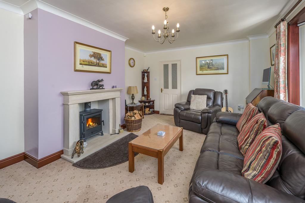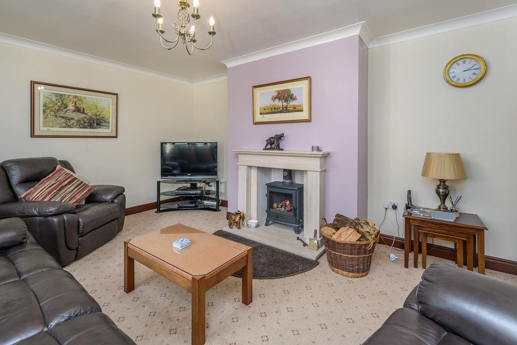 Bathed in natural light, the lounge is a welcoming room in which to spend time with family and friends. The central fireplace, with a polished limestone surround housing a multi-fuel burner, forms an attractive focal point and entices you to sit before it during the cooler months. There are two alcoves to either side ideal for positioning further furniture or the television.