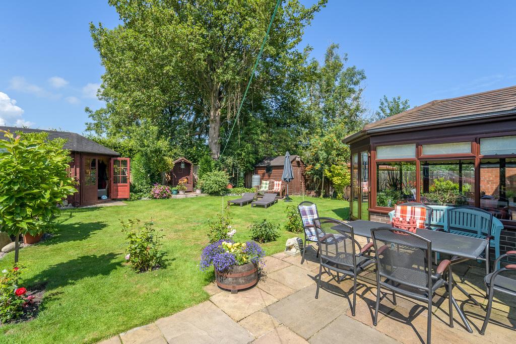 Externally, the rear garden offers a substantial paved area which is ideal for enjoying al fresco dining during the warm summer months. There is a sizable lawn, with roses and raised beds forming a lovely backdrop. A greenhouse offers the ideal space in which to plant seeds and grow your own produce and a garden shed provides excellent storage. The summer house is a lovely space in which to relax and unwind whilst enjoying the view of the mature shrubs and beautiful flowering plants: an attractive and restful outside space.