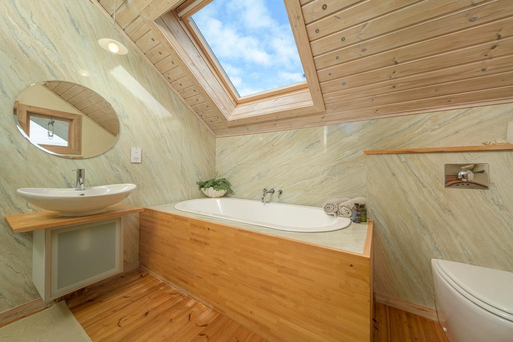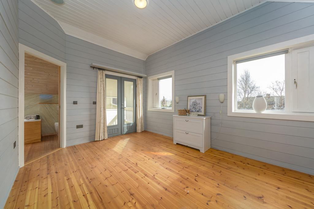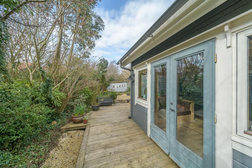 The ground floor bedroom, with independent access and a shower room adjacent, is a glorious and spacious double room with a window overlooking the side of the property. A door opens out to a decked area within the garden which enables a smooth transition between indoor and outdoor living and would be a lovely space in which to enjoy a cup of coffee at the end of the day.