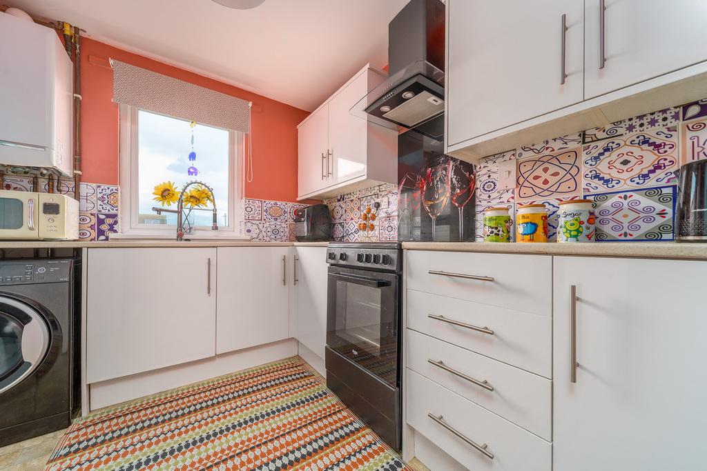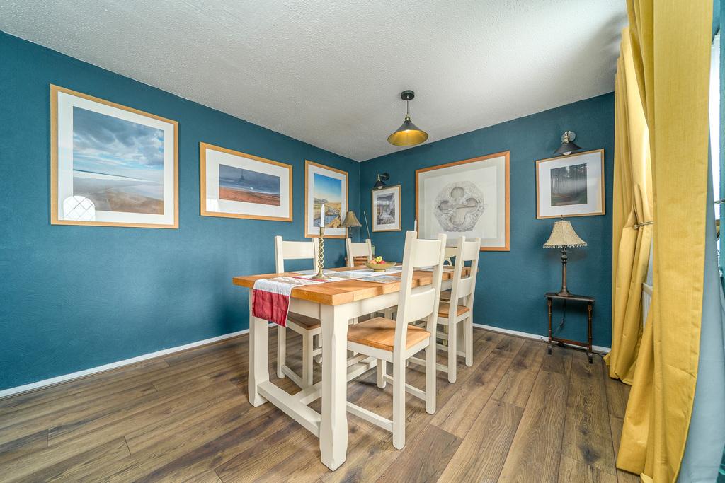 The kitchen offers plenty of wall and base units with white high gloss doors complemented by a contrasting neutral-coloured work surface and arts and crafts style splash back tiling. There is space for a free-standing cooker with a glass splash back and glass and black chimney style extractor fan above, space for a free-standing fridge-freezer and washing machine. A large window, above the bowl and a half stainless steel sink with a designer looking tap over, captures uninterrupted views of the rear garden in addition to allowing a wealth of natural light to circulate. The Baxi boiler is housed in a wall unit for ease of access.