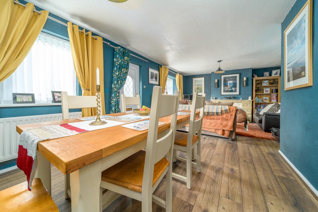 The front door opens into the welcoming lounge-diner which offers plenty of space to relax on comfortable seating and to sit and dine. Two windows allow a wealth of natural light to circulate. An electric feature fireplace with a stone surround and marble back and hearth forms an attractive focal point whilst you are relaxing with family and friends exchanging stories of the day. The space is finished attractively with wood-look flooring.