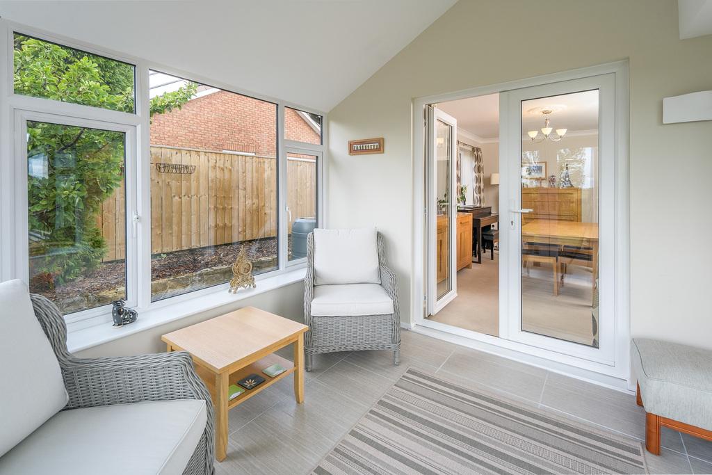 The rear garden offers a private and idyllic outside space. The paved area, accessed from the garden room, leads to a couple of steps up into two lawned areas separated by a stone wall. A picket fence at the foot of the garden allows the uninterrupted views of the open fields to be enjoyed whilst relaxing with a glass of wine or cup of coffee.