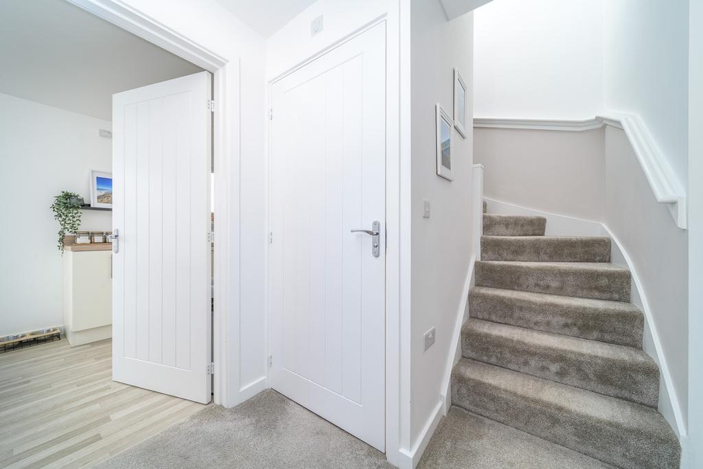 A door opens into the main hallway where the stairs ascend to the first floor and various doors lead off one of which opens to the garage, which is beneficial, which houses the tumble dryer and electrical consumer unit but also presents excellent storage.