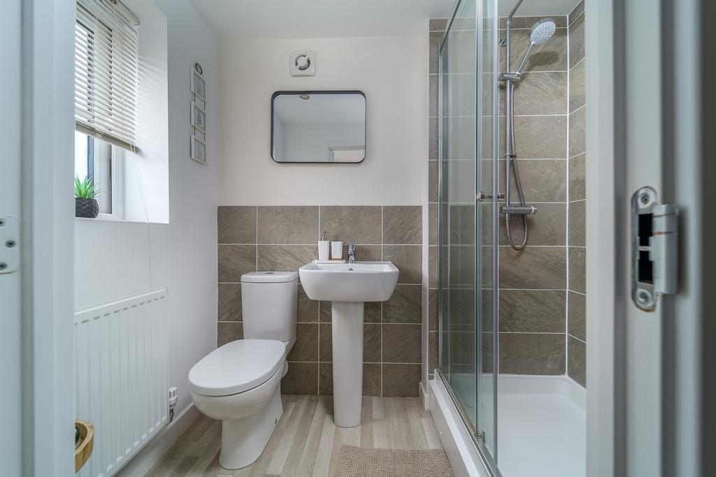 The ground floor WC is a superb asset as it negates the need to continually frequent the upstairs facilities and comprises a wall hung hand wash basin, a close coupled toilet with a push button behind and an extractor fan.