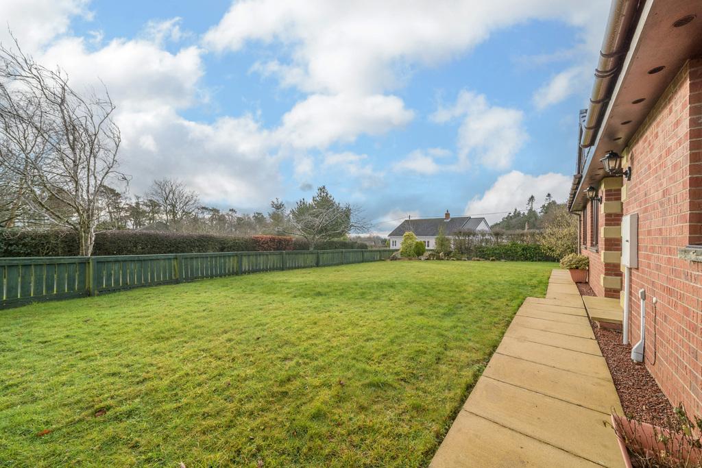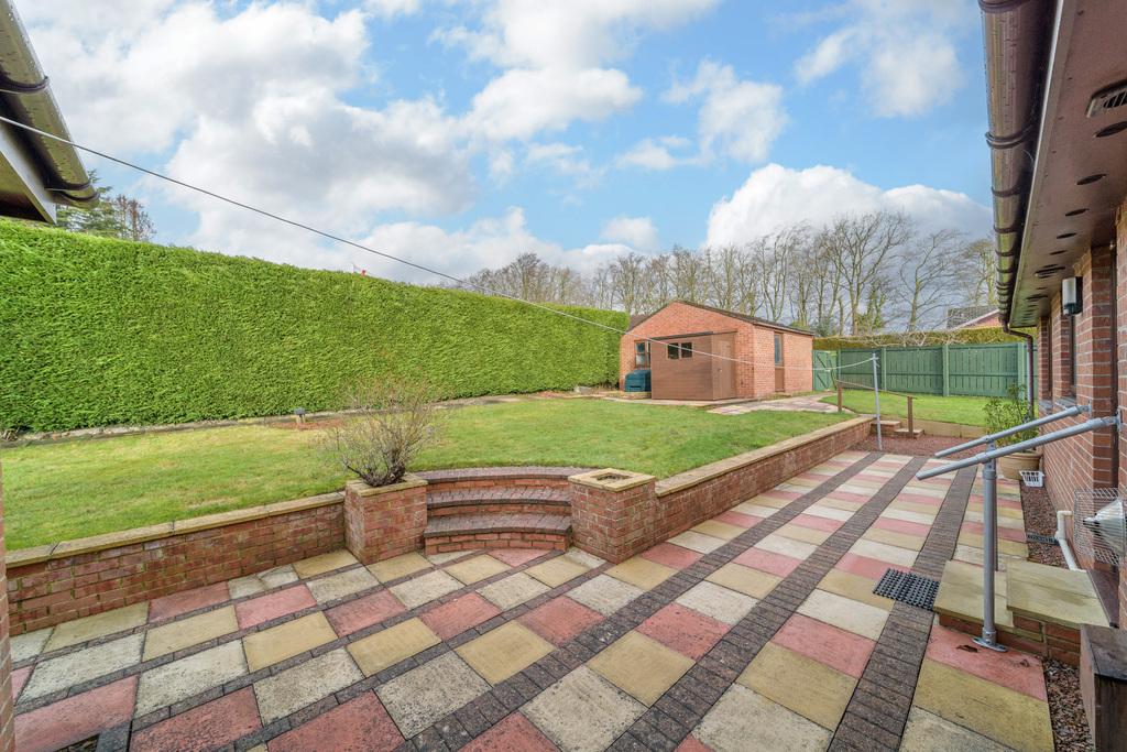 The rear garden is a glorious space. The double garage, with a roller shutter door, can be accessed from here in addition to a shed and a paved area. Mainly laid to lawn, with a conifer hedge to the side, this garden is private and secluded. A further patio is the ideal space in which to enjoy al fresco dining with family and friends with further blocked paved area offering an alternative place to sit and relax. The oil tank is housed discreetly behind the conifer hedging.
