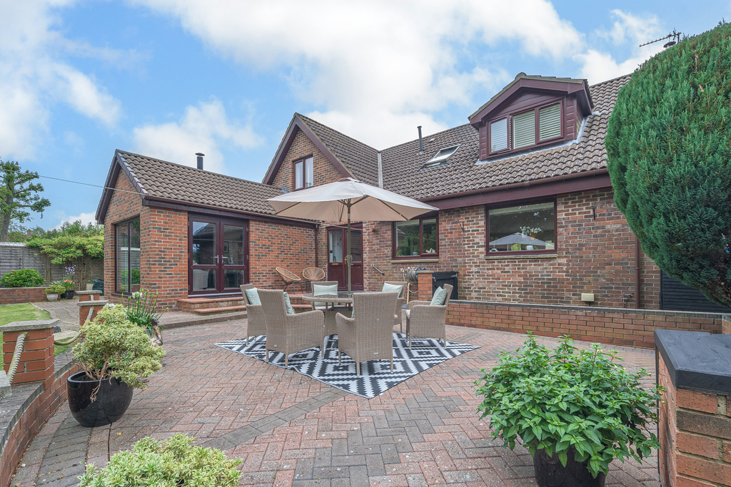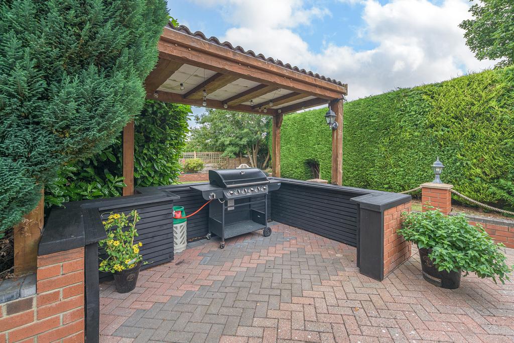 The extensive private wraparound landscaped gardens are wonderful with various seating areas, mature planting and an outdoor BBQ area, mature trees and raised beds, whilst the large block-paved driveway provides lots of parking. Next to the garage is another private sitting area.