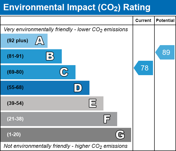 The primary bedroom is a spacious double with a built-in wardrobe. Two windows overlook the rear of the property allowing a tremendous amount of natural light to enter this peaceful space. The fully tiled ensuite comprises a close-coupled toilet with a push button, a large pedestal wash hand basin, a double-sized shower cubicle, a fitted wall mirror and a mirrored wall cabinet. A chrome heated towel rail enhances the comfort offered.
