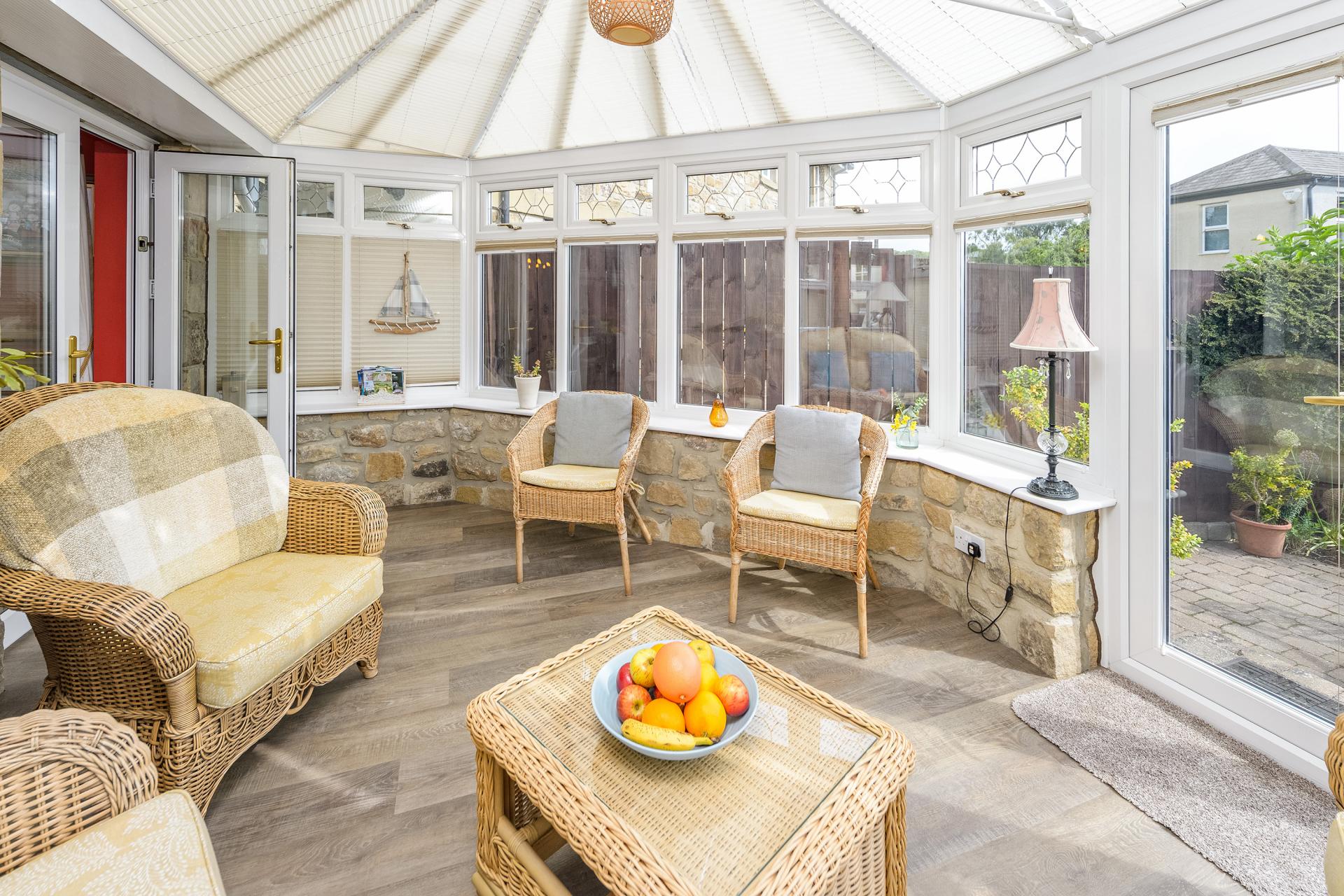 Taking full advantage of the natural light, the conservatory, with glass roof with attached blinds and windows all the way round, is the perfect place in which to relax and enjoy garden views. French doors open to the glorious rear garden allowing the outside to enter inside easily.