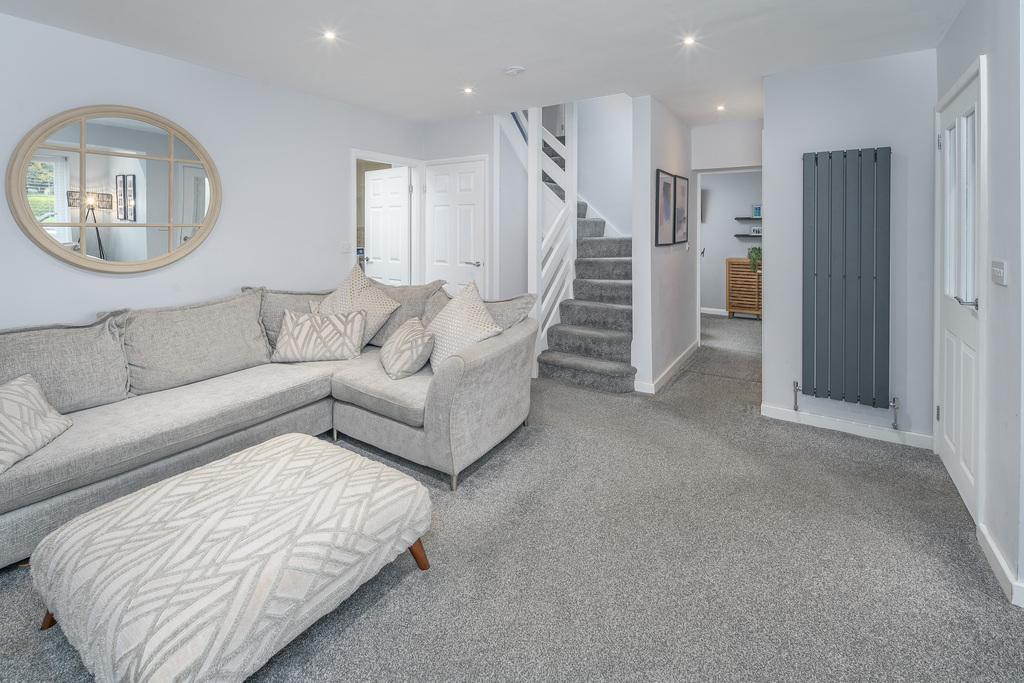 The living room is a welcoming and inviting room which showcases a large media wall creating a superb focal point. There is plenty of space to accommodate a variety of comfortable seating and a large bay window to the front illuminates the room beautifully. Recessed ceiling spotlights add brightness. Stairs ascend to the first floor and there is access to a useful storage cupboard beneath which also incorporates the electrical consumer unit for ease of access.
