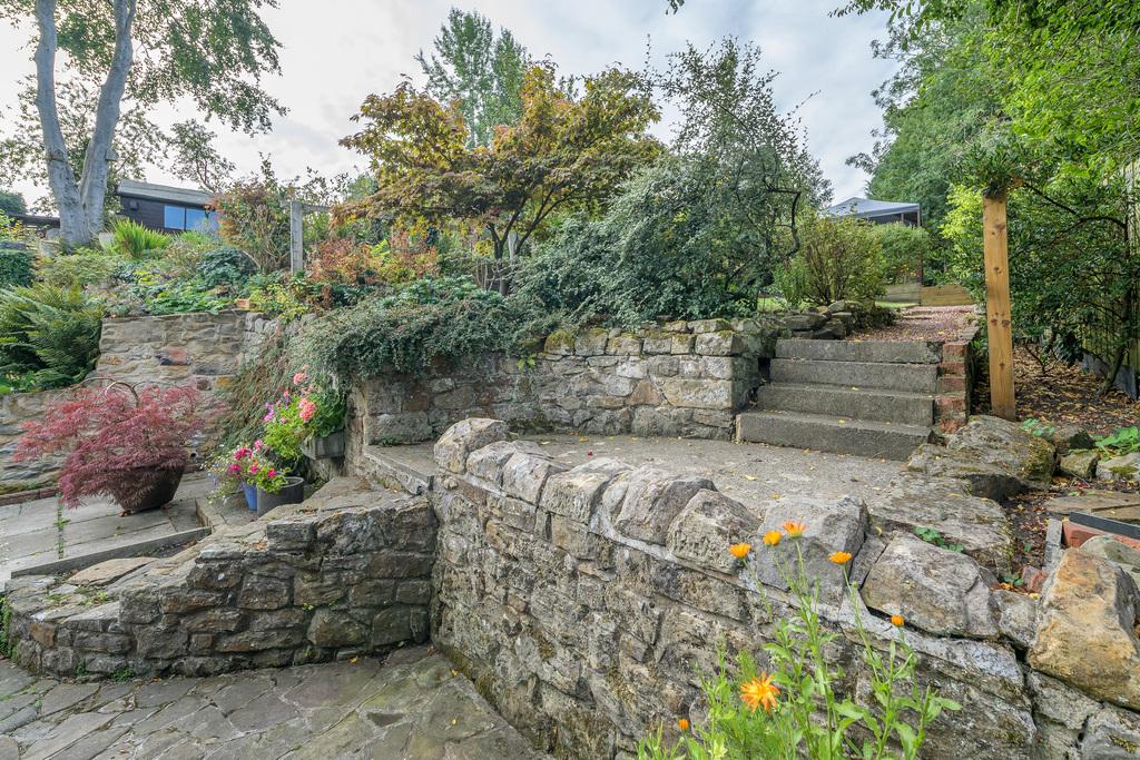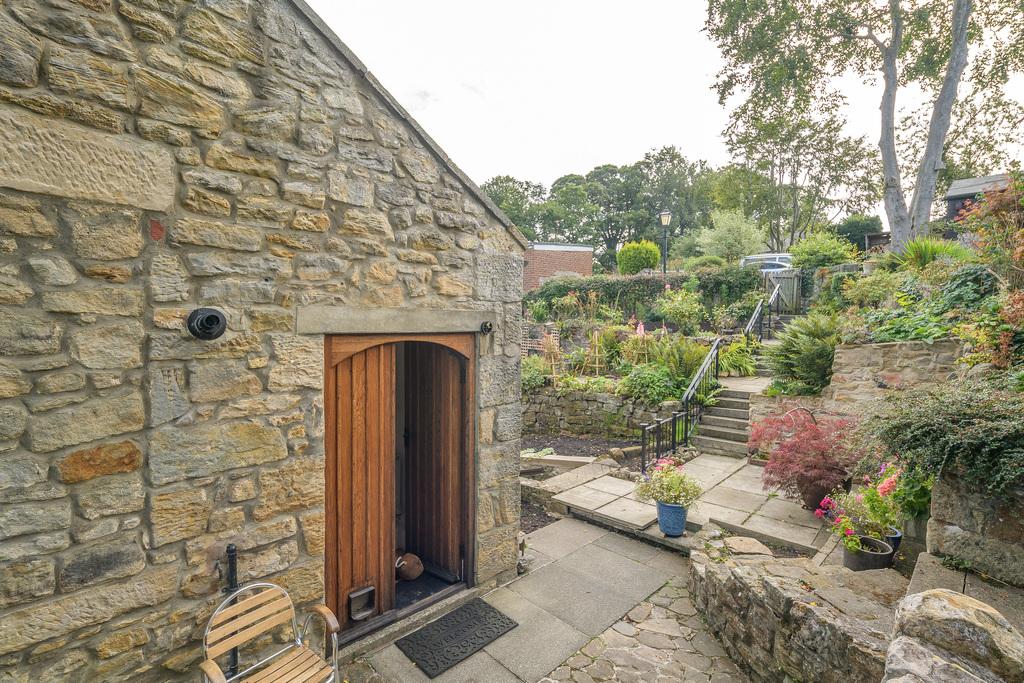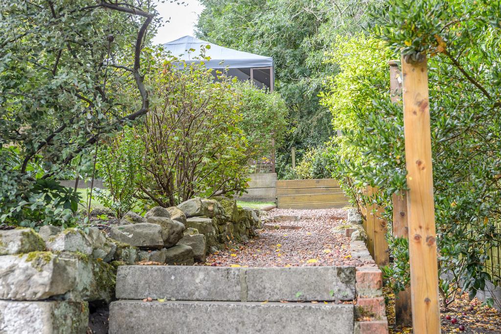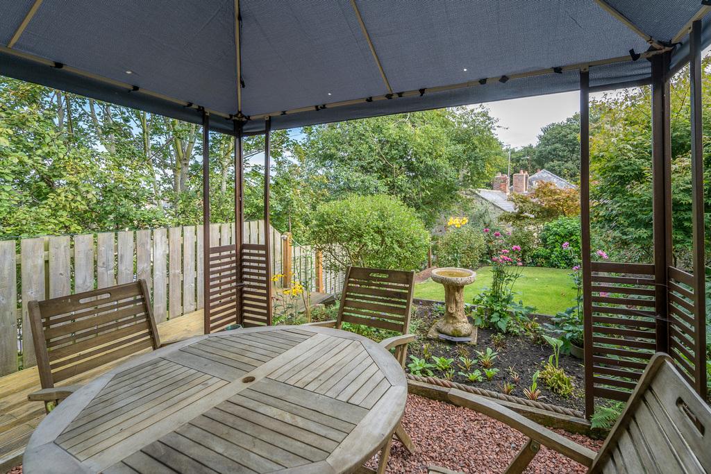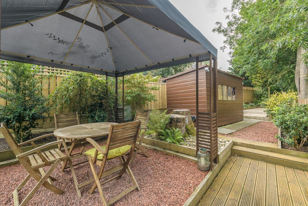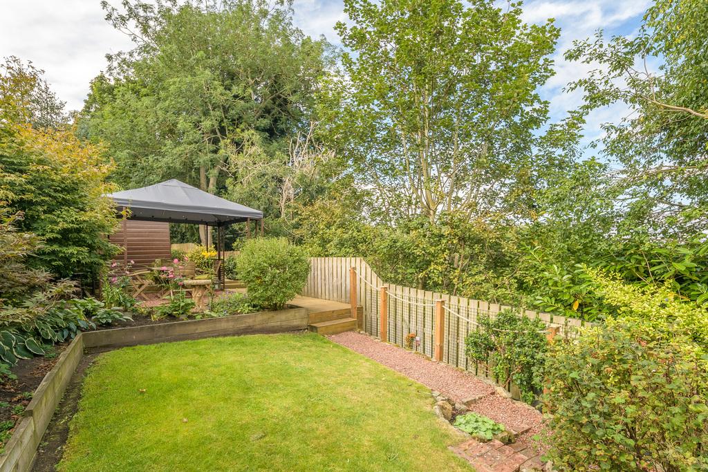 Externally, the house benefits from a pretty garden with several different features. There is a large paved area directly outside the house with steps leading up to the main garden, with a lawn, mature, herbaceous borders, and a covered gazebo which offers a pleasant space with privacy for relaxing and entertaining. Beyond, there is a large garden shed which benefits from mains electricity and natural light, allowing for dual-purpose use of the space. A further paved patio leads to the end of the garden.
