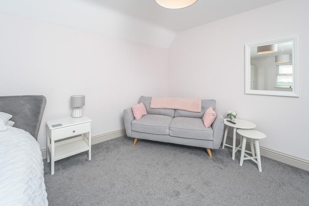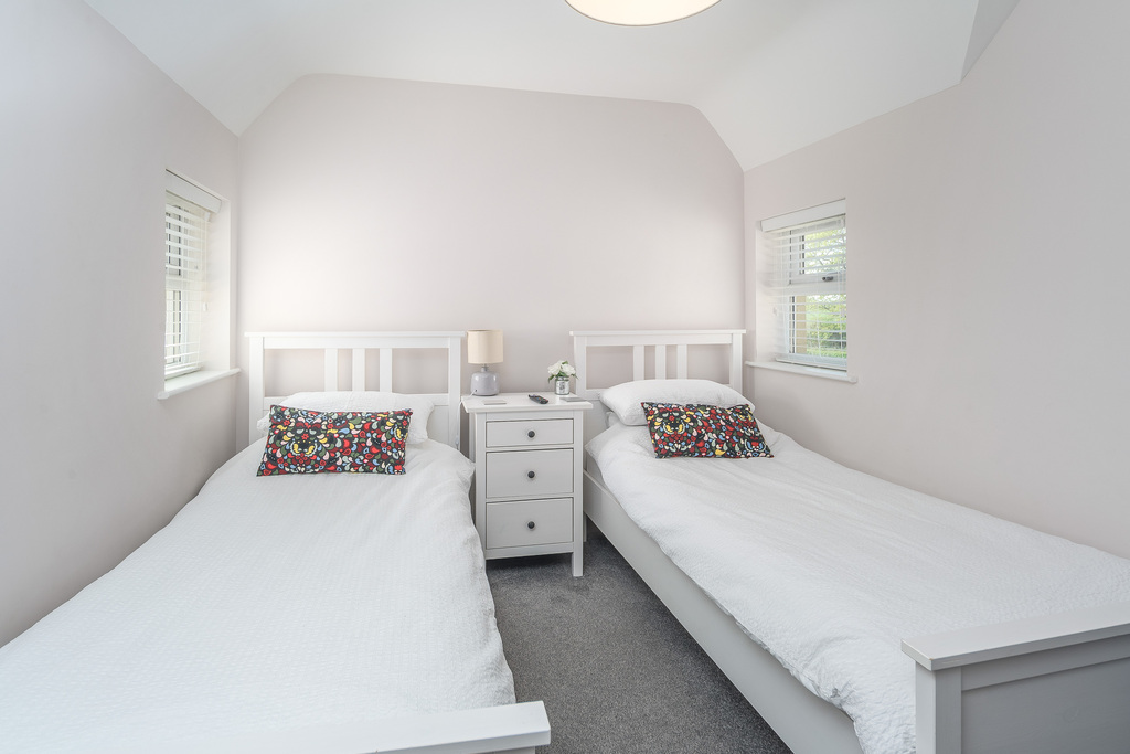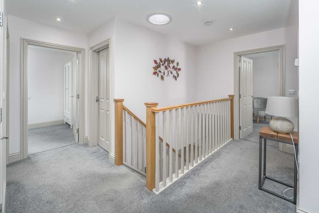 Bedroom 4 is a double bedroom with a built-in wardrobe over the head of the stairs. Two windows to either side allow a wealth of natural light.