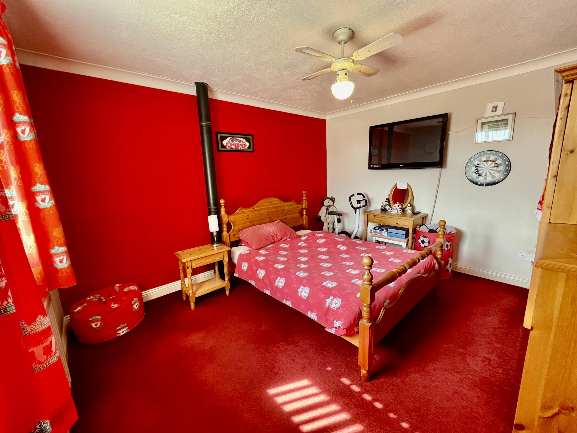 DRESSING ROOM 11' 7" x 6' 10" (3.54m x 2.10m) Laminate flooring, UPVC window to the rear elevation overlooking open farmland, coved and textured ceiling, ceiling light with propeller style fan, 2 fitted double wardrobes.