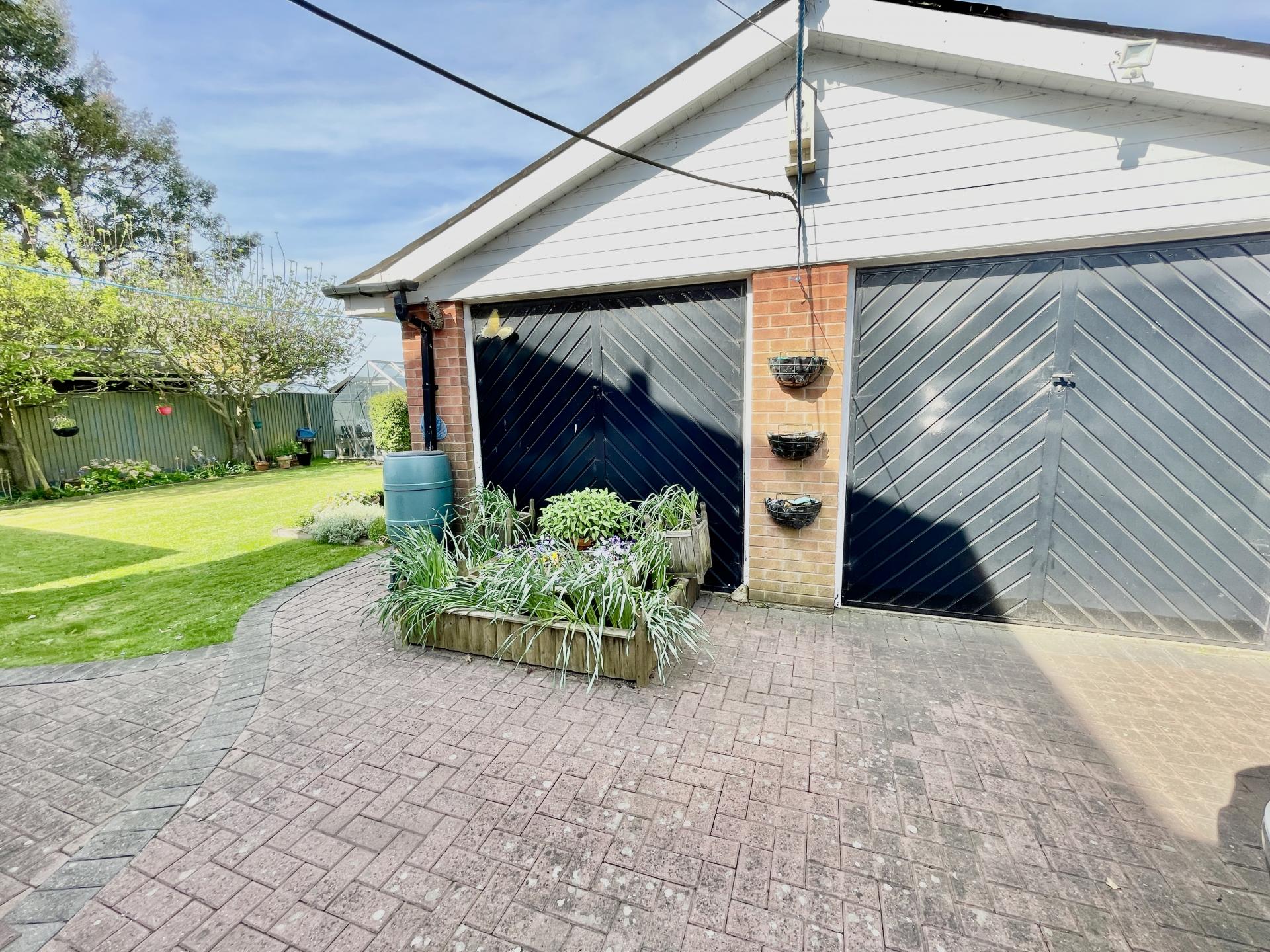 EXTERIOR The property stands nicely back from the road with a lawned front garden with extensive stocked borders, gravelled driveway and turning bay with multiple parking which continues down the side of the property on to a block paved driveway with further multiple parking and access to: