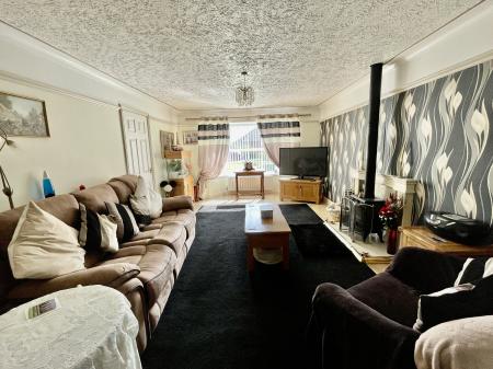 LOUNGE 17' 8" x 12' 0" (5.41m x 3.68m) plus bay window to the front elevation. Laminate flooring surrounding a central fitted carpet, modern multi fuel stove with decorative surround, picture rail, textured ceiling, ceiling light, 2 radiators, square arch into: