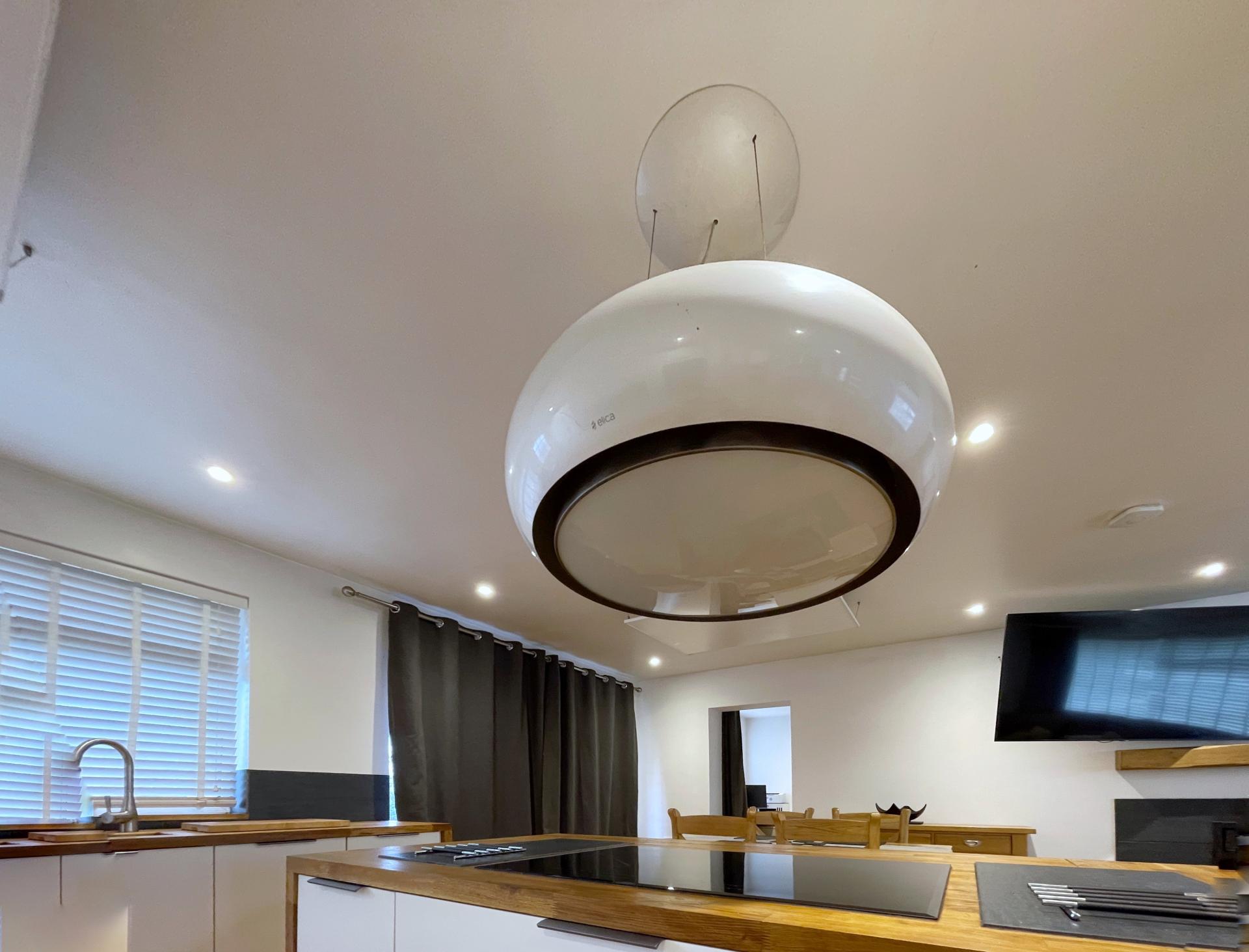 OPEN PLAN KITCHEN/DINING/LIVING AREA 20' 6" x 23' 4" (6.27m x 7.12m) Engineered oak flooring, radiator cover/shelving, skimmed ceiling, inset LED lighting, smoke alarm, 3 Infrared electric panels. The kitchen area is fitted with a wide range of base, eye level and tall boy units, fitted oak worktops over, tiled splashbacks, inset enamel one and a quarter bowl sink with fitted mixer tap, integrated AEG dishwasher, fridge freezer, eye level AEG fan assisted electric oven and combination over, pull out larder units, central island with AEG induction hob, drawer units, extractor hood over, UPVC double glazed window to the rear elevation, obscured glazed stable door to the rear elevation, UPVC double glazed patio doors to the rear elevation, UPVC double glazed window to the front elevation, inset multi fuel burner set on tiled hearth, tiled splashbacks and solid oak mantle, TV point. Square arch into: