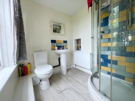 EN-SUITE 5' 10" x 5' 11" (1.78m x 1.82m) Wooden sash window to the front elevation, skimmed ceiling with centre light point, double radiator, fitted plank oak effect flooring. Fitted with a three piece suite comprising low level WC, pedestal wash hand basin with mixer tap and tiled splashbacks, fully tiled shower enclosure with fitted thermostatic shower over.