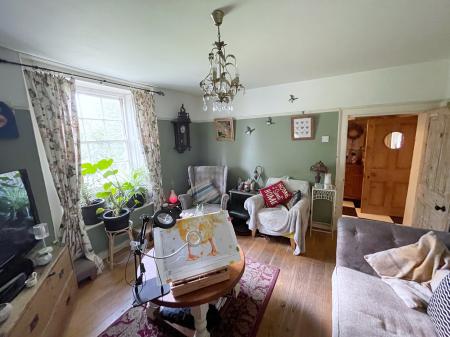 LOUNGE 11' 9" x 13' 1" (3.59m x 4.01m) Wooden sash window to the front elevation, skimmed ceiling, centre light point, veneered oak floor boards, TV point, inset original fitted storage cupboards, Inglenook fireplace with wooden surround, brick hearth and inserts with fitted multi fuel burner.