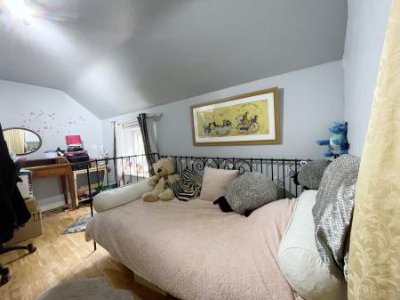 BEDROOM 4 7' 5" x 13' 3" (2.27m x 4.06m) Georgian style wooden glazed window to the side elevation, skimmed ceiling, centre spotlight fitment, access to loft space, double radiator, fitted oak flooring, storage into recess with hanging rail and shelving.