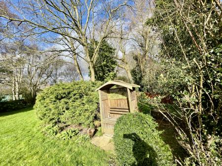REAR GARDEN Extensive lawned area with a wide range of mature shrub and tree borders, woodland area, fenced boundaries to both sides and to the rear elevations, wooden garden shed.
