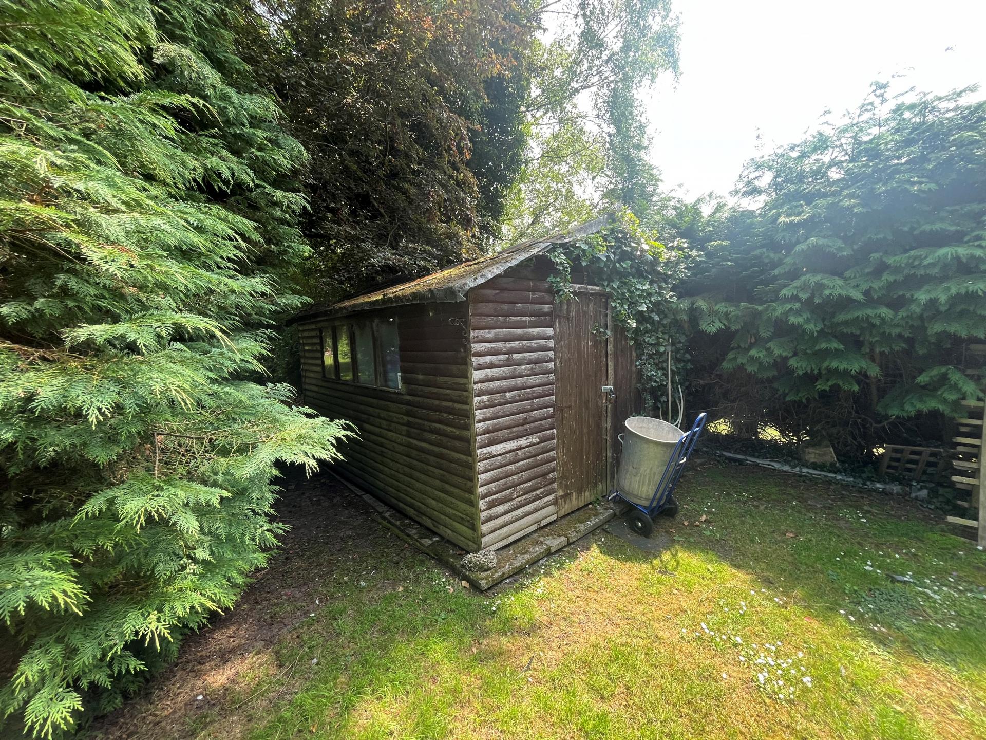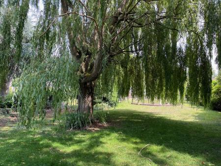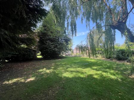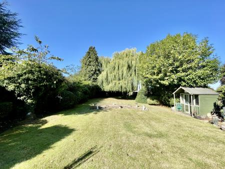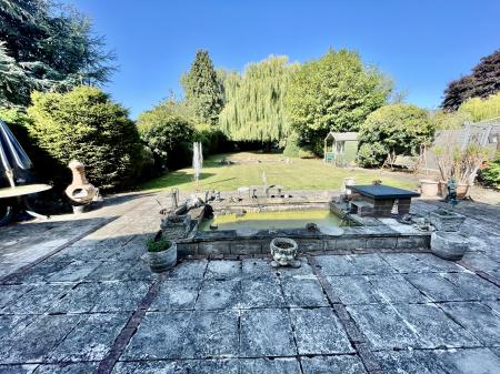 ESTABLISHED REAR GARDENS Of generous dimensions including a full width paved patio, ornamental pond with water feature, extensive lawned garden, curved raised gravelled bed, extensive lawns, mature Weeping Willow tree, stocked borders, hedgerow, some fencing, 2 garden sheds, greenhouse, cold water tap, sun canopy over the rear lounge window.