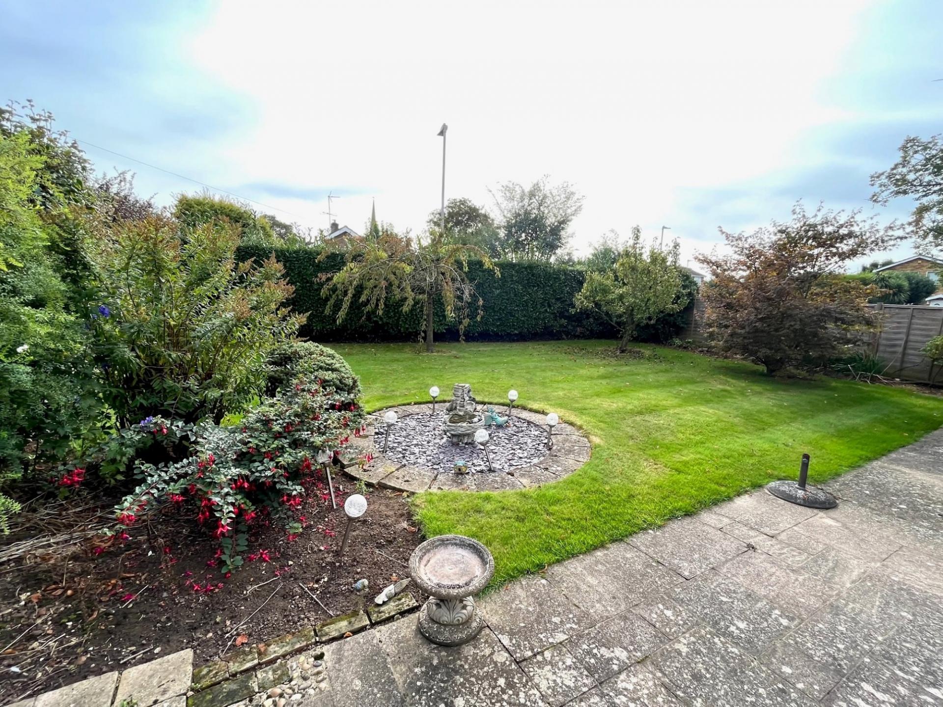 ESTABLISHED GARDENS Situated to the side and rear including a lawned area with hedgerow to the boundaries affording a good level of privacy yet enjoying views of the Spire of Moulton Parish Church, stocked border, paved patio areas continuing round to the rear of the property where there is a small lawned area, raised planter/rockery, stocked border, small shed and a further small hard standing area.