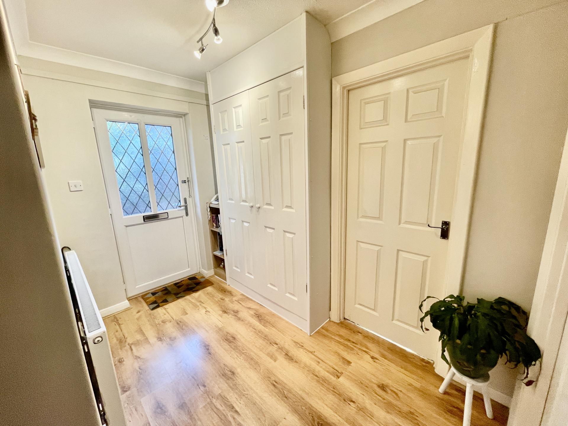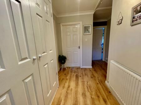 ENTRANCE HALL : Having a radiator, power points, loft hatch, airing cupboard with shelving and a double storage cupboard.