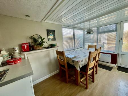 TRIPLE ASPECT DINING ROOM : 4.88m x 2.29m (16'0" x 7'6") UPVC double glazed windows to both sides and the rear, UPVC double glazed door to the rear, power points, base units with a work surface over. Door through to the:-