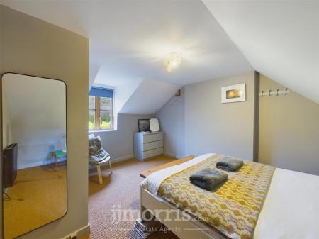 Bedroom Two - Wooden window, electric heater radiator, loft access.