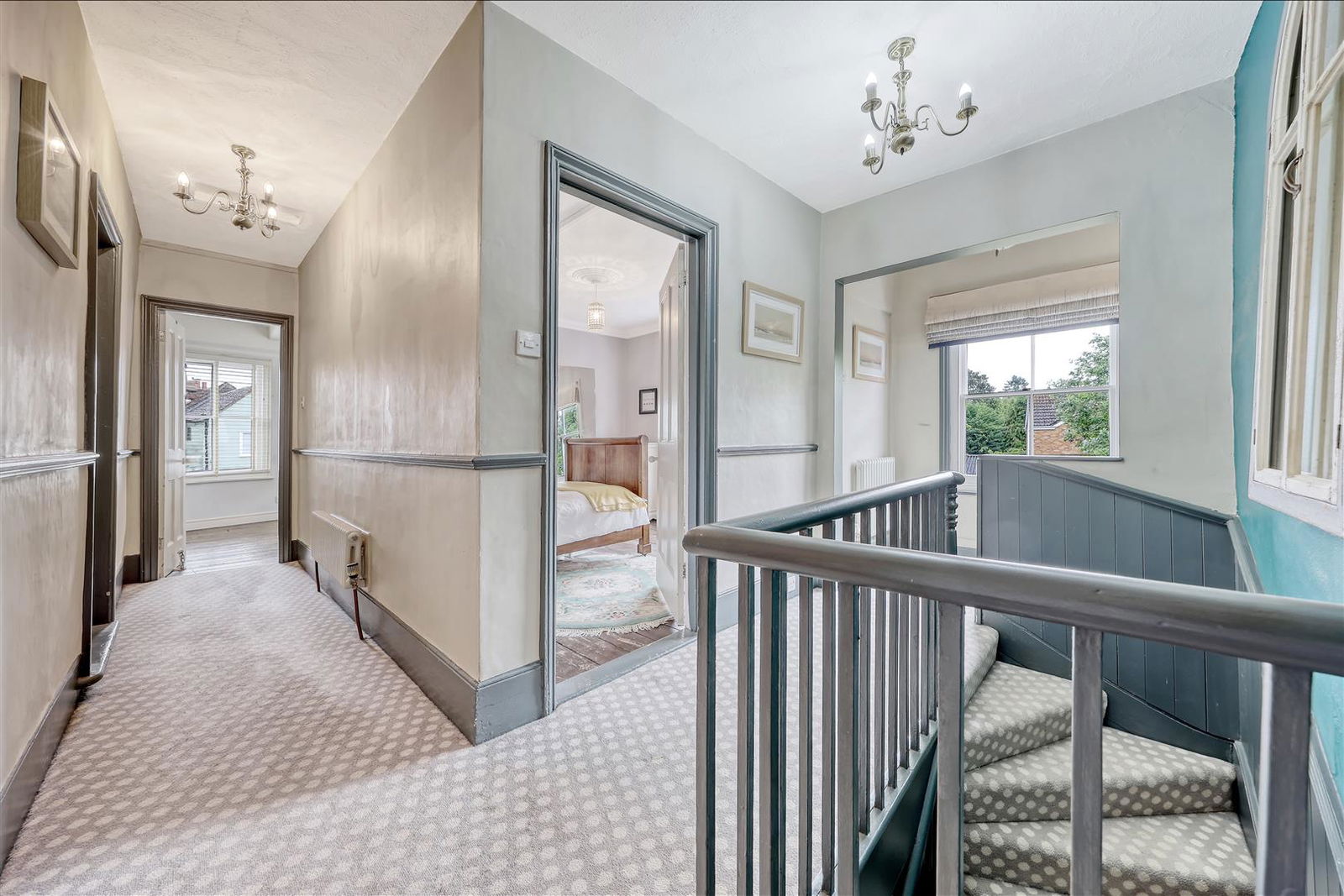 Part galleried landing with sash window to rear aspect. Column radiator. Doors off to bedroom accommodation, family bathroom and separate shower room.