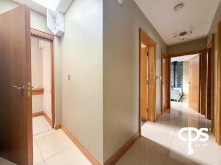 Spacious open plan kitchen and living area, well laid out to maximise both living and dining space. The kitchen is fitted with a range of high and low level units and includes an integrated oven, electric hob with overhead extractor fan, and stainless steel sink. Plumbing is in place for a washing machine/tumble dryer. Finished with tiled flooring throughout, this is a bright and practical space ideal for everyday living and entertaining.