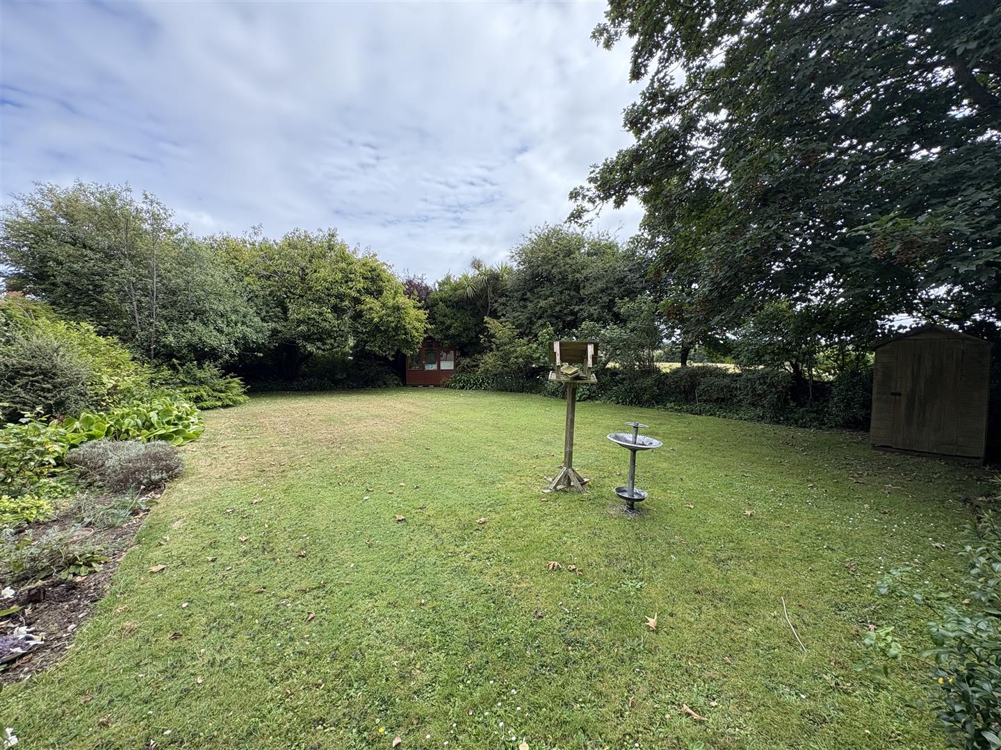 Outside - To the front of the property, the garden is divided into two sections of lawn, currently requiring some upkeep but offering ample potential for improvement. To the rear, the garden features a generously sized lawn bordered by mature shrubs and established trees, providing a private and leafy outdoor space with plenty of scope for landscaping or family use.