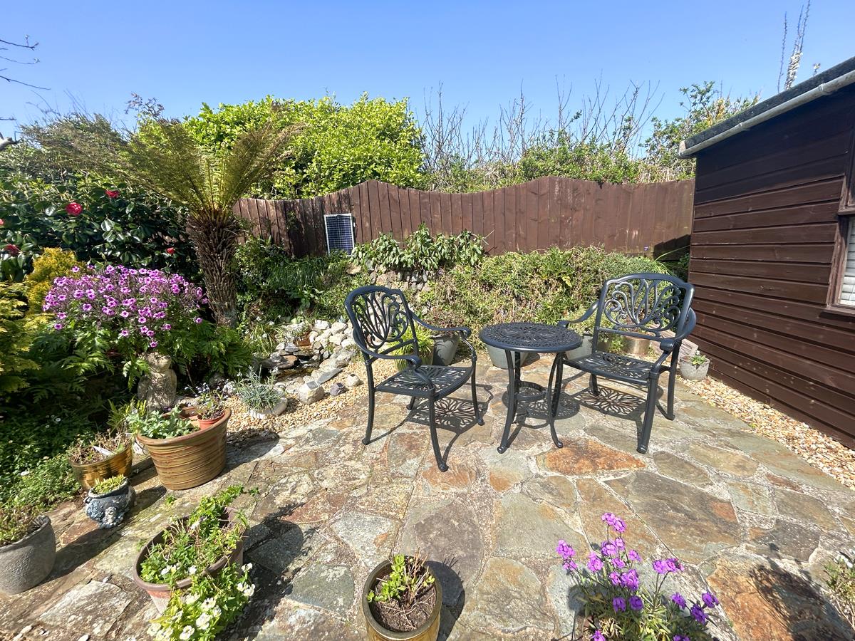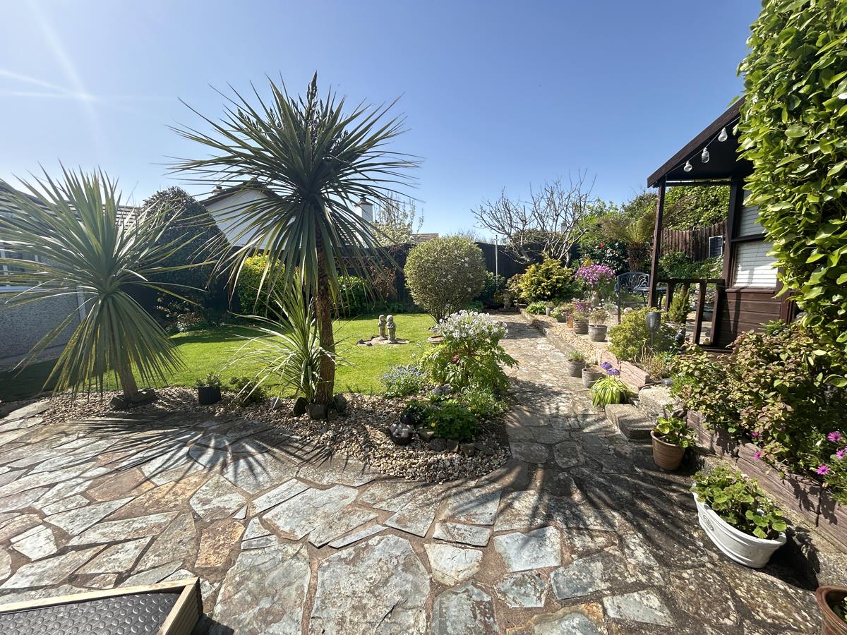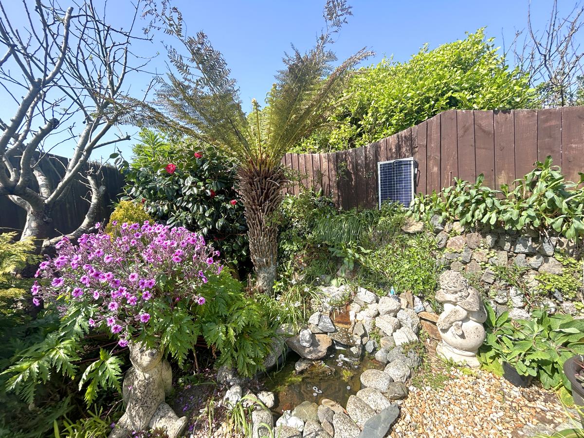 Rear Garden - This area is an absolute delight, thoughtfully landscaped and beautifully maintained. It boasts an impressive array of mature plants, trees, and shrubs, creating a rich and tranquil environment. A charming stone patio provides an ideal seating area, enhanced by attractive Mediterranean-style planting and an ornamental pond with a gently moving water feature, adding to the sense of calm.